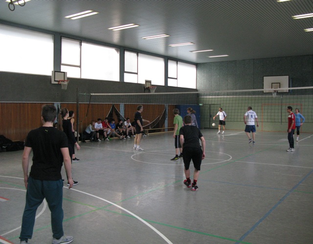 Und auch die beiden Schülermannschaften verlangten ihnen so einiges ab. Insgesamt vier Teams traten beim Turnier in der großen Sporthalle an und kämpften um den Sieg. Dabei ging es zum Schluss denkbar knapp zu. Plötzlich waren nämlich die Kräfteverhältnisse auf den Kopf gestellt: Sind doch die Schüler im Schulalltag meist von den Lehrern abhängig, so war das Lehrerteam diesmal auf Schützenhilfe ihrerseits angewiesen. Bei einem Sieg der Schüler über die Eltern wäre für die Lehrer sogar noch der erste Platz möglich gewesen. In einem denkbar knappen und spannenden ersten Durchgang nutzte das Schülerteam allerdings mehrere Satzbälle nicht und musste sich nach einem verlorenen zweiten Satz dann geschlagen geben. Auch wenn sich das Elternteam den erste Platz sicherte, waren alle Sieger, egal ob Schüler, Lehrer oder Eltern: Schließlich leistete jeder seinen sportlichen Beitrag zu einem gelungen, fröhlichen und fairen Turnier mit teils spektakulären Ballwechseln. Eine Wiederholung ist garantiert, denn die Lehrer brennen auf eine Revanche!