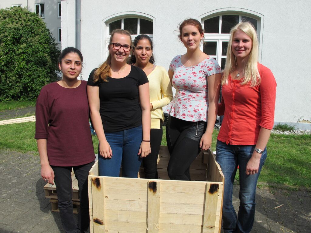 Am 19.08.2015 wurden die Schülerinnen und Schüler des Bio LK der Q1 von Herrn Landsberger sowie die Mitglieder der Schulgarten-AG in der Ermekeil-Kaserne handwerklich aktiv und haben die ersten Hochbeet-Pflanzkisten für den neuen Schulgarten des Clara-Schumann-Gymnasiums gebaut. Mit der Unterstützung von Biologie-Lehramts-Studierenden der Universität Bonn (Abteilung Fachdidaktik Biologie) sowie der fachkundigen Anleitung und Hilfe von Anna Wissmann vom Urban-Gardening-Projekt der Ermekeil-Initiative sägten und schraubten die Schülerinnen und Schüler bei bestem Wetter aus alten Einweg-Paletten 5 Pflanzkisten auf dem alten Exerzierplatz der Ermekeil-Kaserne zusammen.