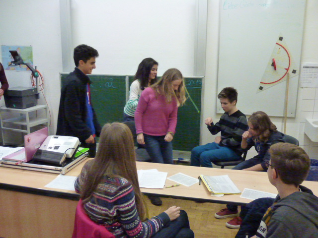 Die Klasse 7a des Clara-Schumann-Gymnasiums empfängt im Politik-Unterricht von Herrn Leyhe drei Vertreter von amnesty international zum Tag der Menschenrechte.